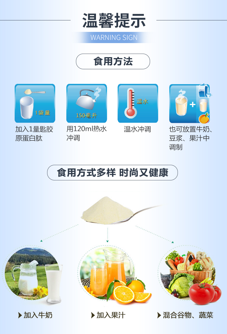 5.喝肽后,一定要多喝水(200毫升的水杯,建议2-3杯水为宜)。